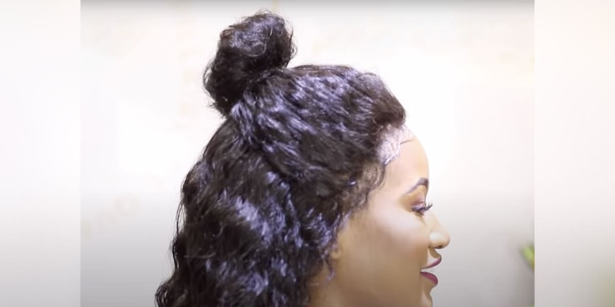 Dans cet exemple, nous pouvons voir que la coiffure est un chignon demi-tête permettant de masquer le « trou » de la 360 Lace Frontal.
